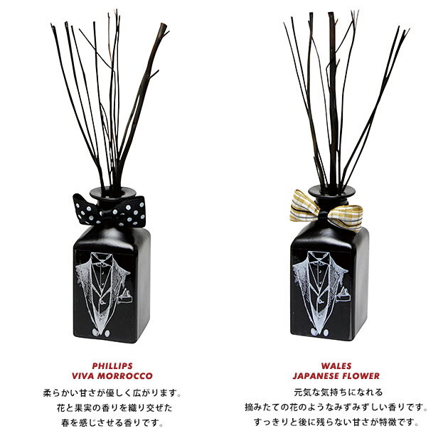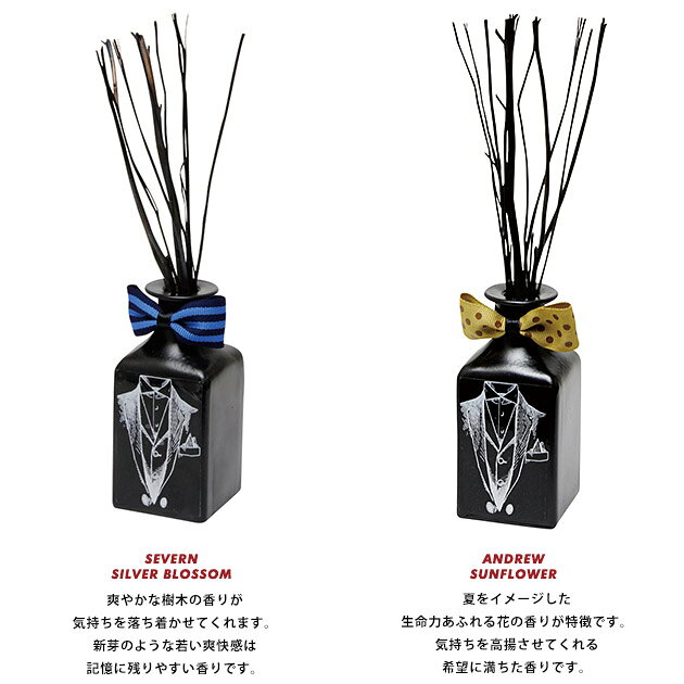 ジェントルマンをモチーフにしたブラックボトルのディフューザーは、その存在感で部屋の雰囲気をよりダンディーに引き締めてくれます。